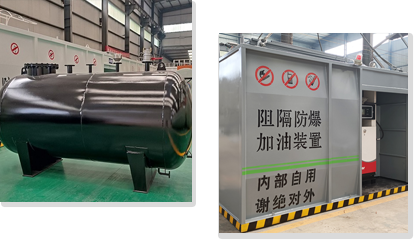 • 傳統加油站和撬裝式加油站的區別? 撬裝加油站是集加油機、阻隔防爆雙層儲油罐、阻隔防爆油氣回收和自動滅火器于一體的地面加油裝置